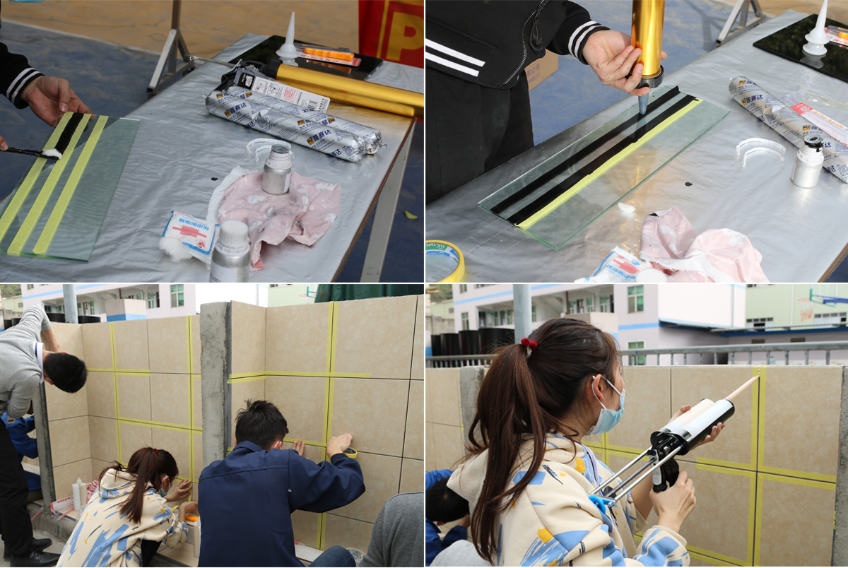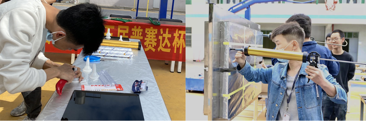 第一輪淘汰賽共分為兩項(xiàng),來(lái)自業(yè)務(wù)部和產(chǎn)品部的參賽選手,根據(jù)不同場(chǎng)景的應(yīng)用需求,在答題卡上寫(xiě)出適用的產(chǎn)品型號(hào)并說(shuō)明原因,其它部門(mén)的參賽選手進(jìn)行保型性測(cè)試打膠,所有選手完成各自對(duì)應(yīng)項(xiàng)目后,需為不同的產(chǎn)品現(xiàn)場(chǎng)施工切膠嘴。這輪比拼要求選手們熟練掌握產(chǎn)品及應(yīng)用體系,能根據(jù)客戶的應(yīng)用需求及時(shí)提供用膠解決方案。