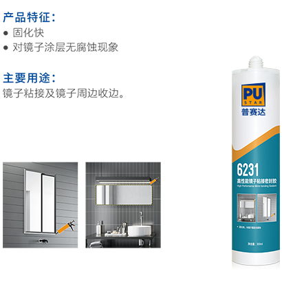 6231為單組分濕氣固化密封膠,采用中性硅酮膠作為原料, 對環(huán)境無污染,與金屬、陶瓷、玻璃、石材等多種基材具有良好的密封粘接性能。